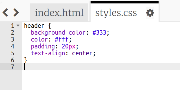 Let's add the header element and apply the CSS style for the header. Here are the next steps: