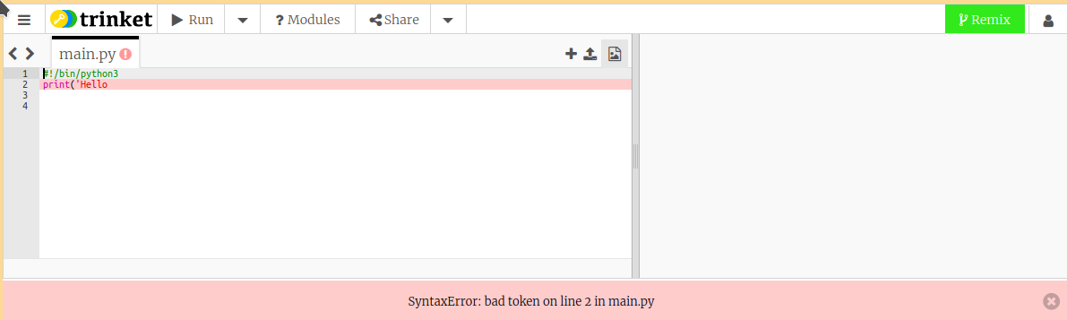 IMPORTANT!: It's important to understand that Trinket creates public web pages and projects that anyone with a link can view. Young people may need a reminder about the importance of not sharing personal information online.