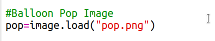 We also want to see a baloon pop on the mouse clikc, so balloon image should change the image to the pop image. First we load the pop image before the game loop as following: