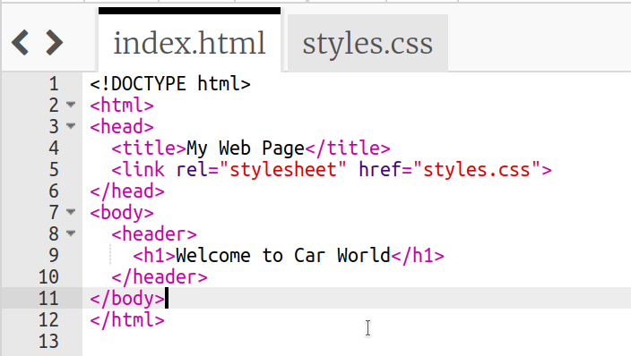 Let's add the header element and apply the CSS style for the header. Here are the next steps: